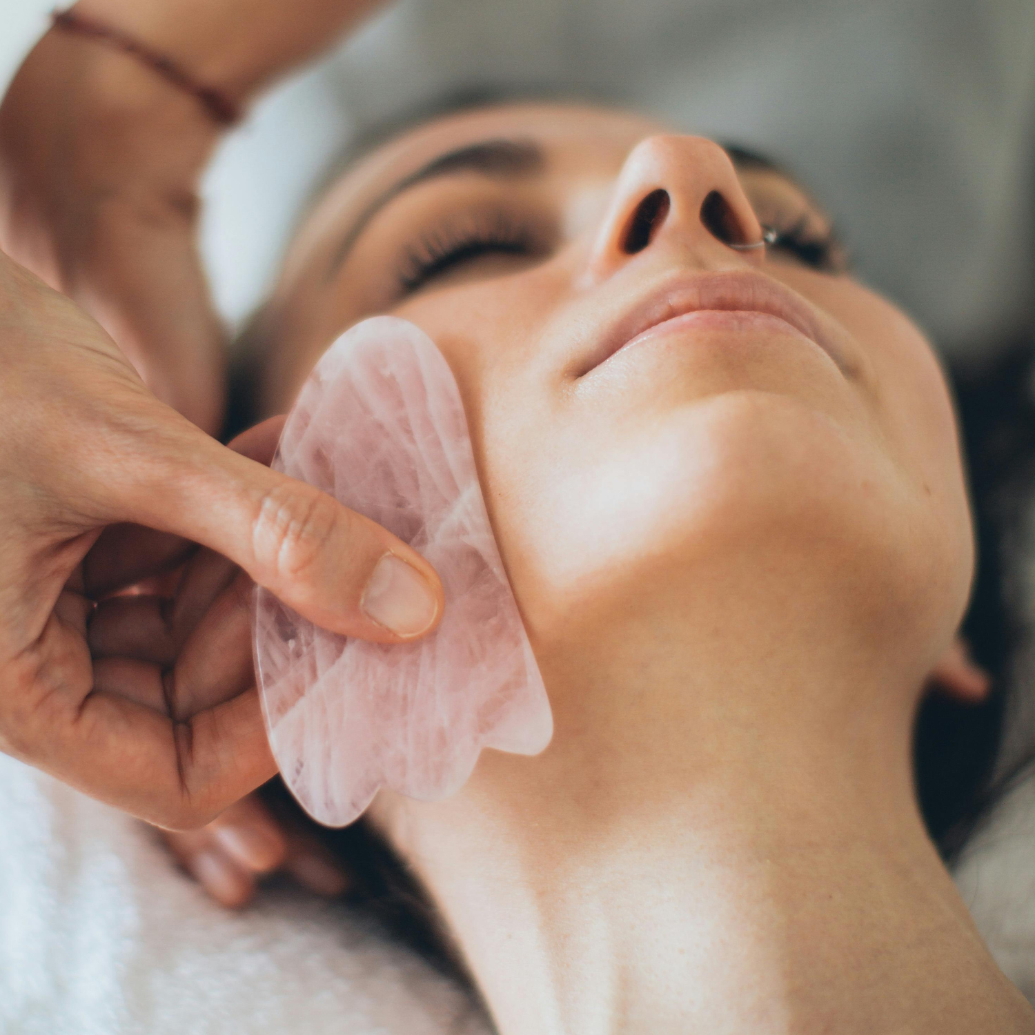 Découvrez la tradition ancestrale du Gua Sha. À l’aide de pierres de jade naturelles, ce massage accompagné de l'huile de rose, favorise la circulation, détoxifie la peau et apporte une sensation de détente incomparable.